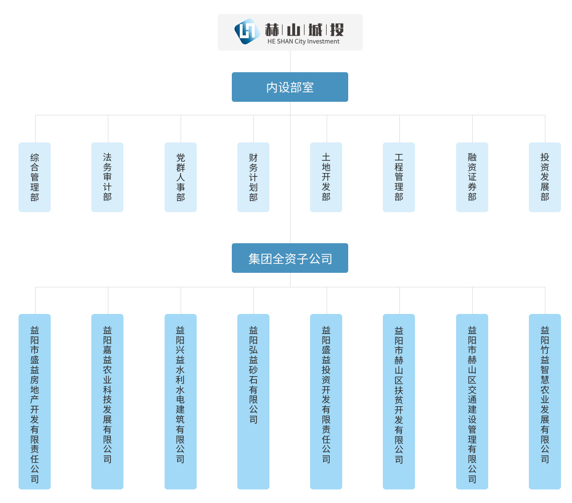 益陽市赫山區(qū)城鎮(zhèn)建設投資開發(fā)(集團)有限責任公司實行董事會領導下的總經(jīng)理負責制,下設8個內(nèi)設部室和8個全資子公司